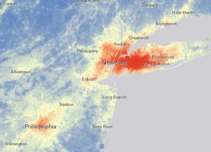 The specific pollutant that the researchers investigated is nitrogen dioxide, whose man-made sources include automobile engines and power plants. People who breathe more NO2 are at greater risk of a horde of ailments, from asthma to heart and lung disease to low birth weights. The researchers got a bead on how much NO2 is floating over America using satellite and land-use data from this study, which also inspired this interactive map of pollution levels. Look at how NO2 hovers over major metropolitan regions: