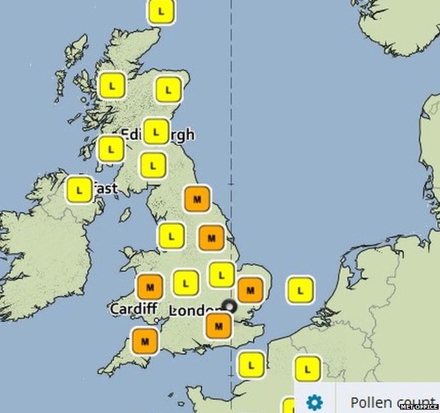 The information is then sent to the Met Office from all the UK sites and is used along with the weather forecast to give the pollen forecast for the next five days.