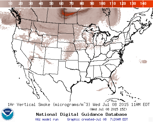 The Upper Midwest and Colorado will get a break starting Friday when the jet stream shifts to the Northeast. This will likely bring hazy, brown air to the Northeast states into the weekend. The forecast from the National Weather Service shows increased smoke concentration shifting east through Thursday night.
