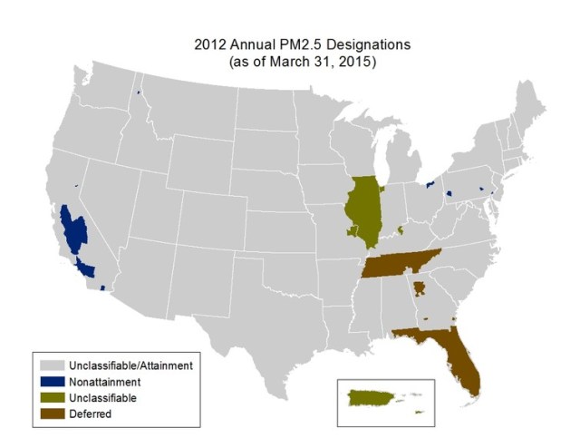 The Clean Air Act requires the Environmental Protection Agency to develop National Ambient Air Quality Standards that provide an adequate margin of safety to protect sensitive populations, such as children and the elderly. In 2012 the EPA tightened the U.S. standard for PM2.5. Nonetheless, in 2015 nearly 24 million people lived in counties that still had unhealthful year-round levels of particle pollution, and over 41 million lived in counties that experienced short-term pollution spikes.