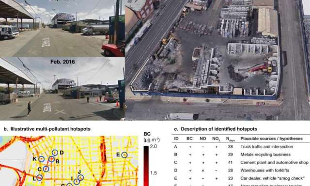 In many locations, the team’s Google cars measured air pollution levels that were several times higher than at Oakland’s official monitors. In their analysis, the researchers also identified many recurring hotspots where pollution on a single block was consistently much higher than elsewhere in a neighborhood. These pollution hotspots included the port, busy intersections, restaurants, warehouses, industrial plants and vehicle dealerships.