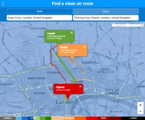 Signposting these clean air routes and providing online maps would keep people away from heavily polluted main streets and would benefit their health, the researchers said. In fact the UK group behind the research have developed a new interactive map of London that allows people to put in any route and be shown a low-pollution walking option.