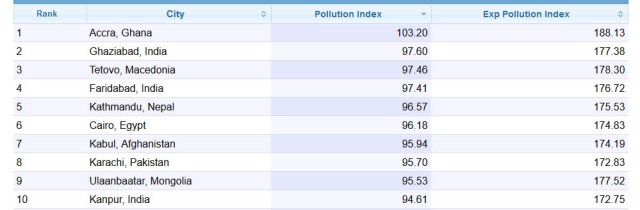 African country Ghana’s capital city Accra tops the list as New Zeanland’s capital city Wellington ranks as the least polluted cities among 269 cities around the globe.