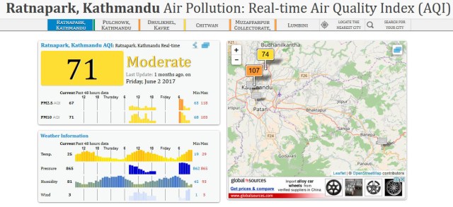 Nepal’s capital city Kathmandu has ranked 5th in Pollution Index 2017 mid-year as published by the Numbeo.com recently.