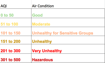 According to the United States Environmental Protection Agency (EPA), when the AQI number reach 101, it’s already unhealthy for sensitive groups, more related numbers show in the chart below.