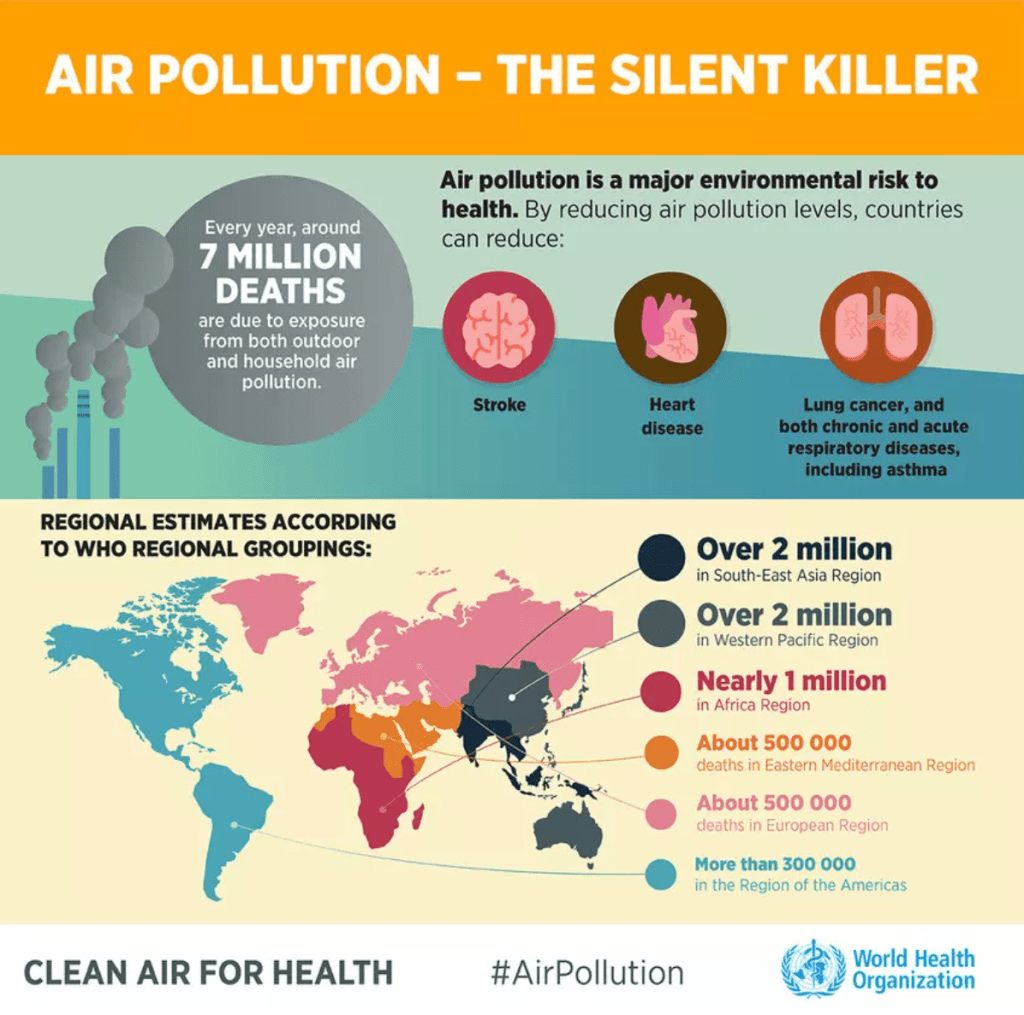 Air pollution is the single largest environmental risk to human health globally, and kills an estimated 7 million people every year, according to the World Health Organization (WHO).