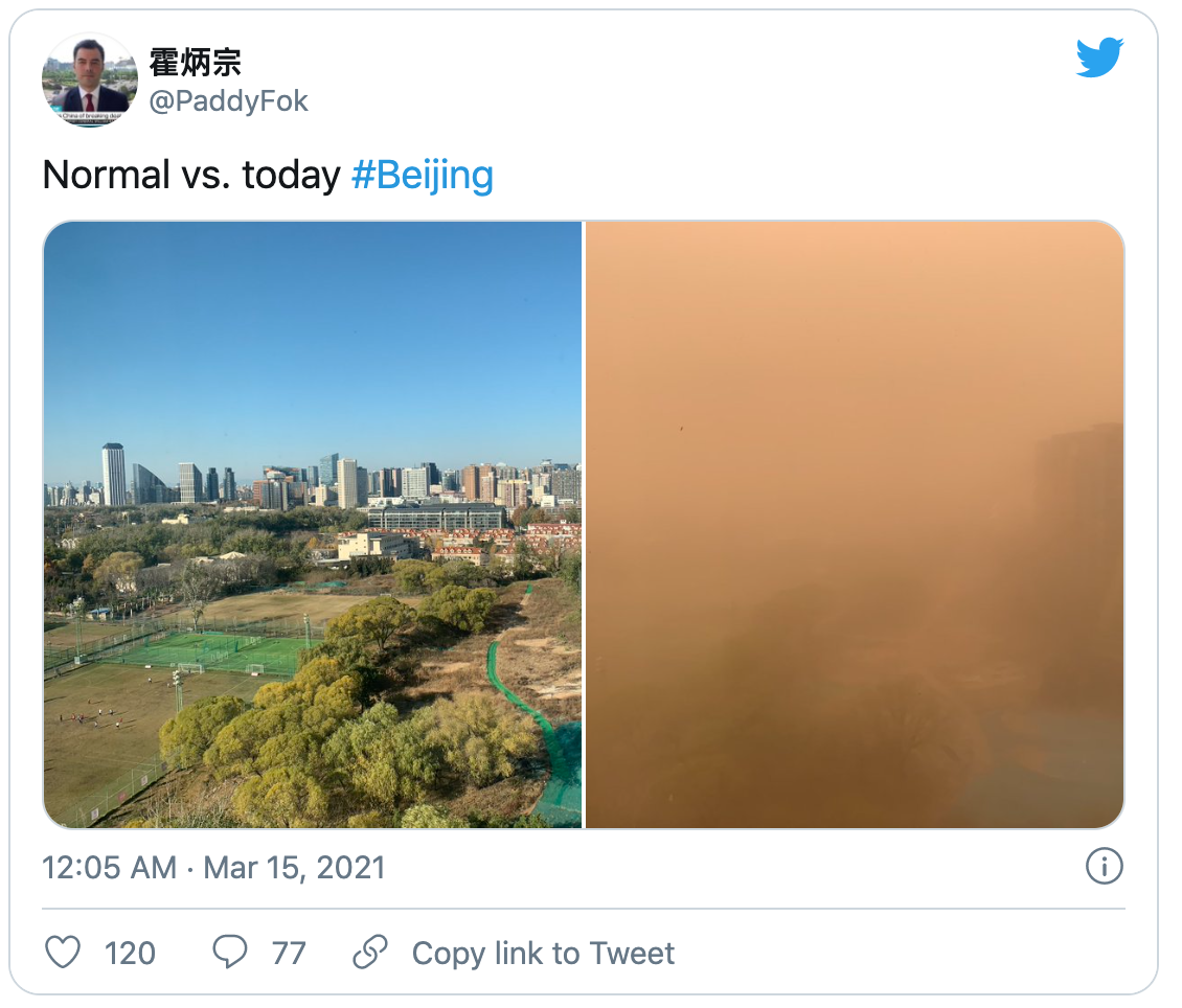 Sandstorms are relatively common at this time of year, and usually attributed to winds blowing across the Gobi desert, but long-term residents said they had not seen one of this severity in years.