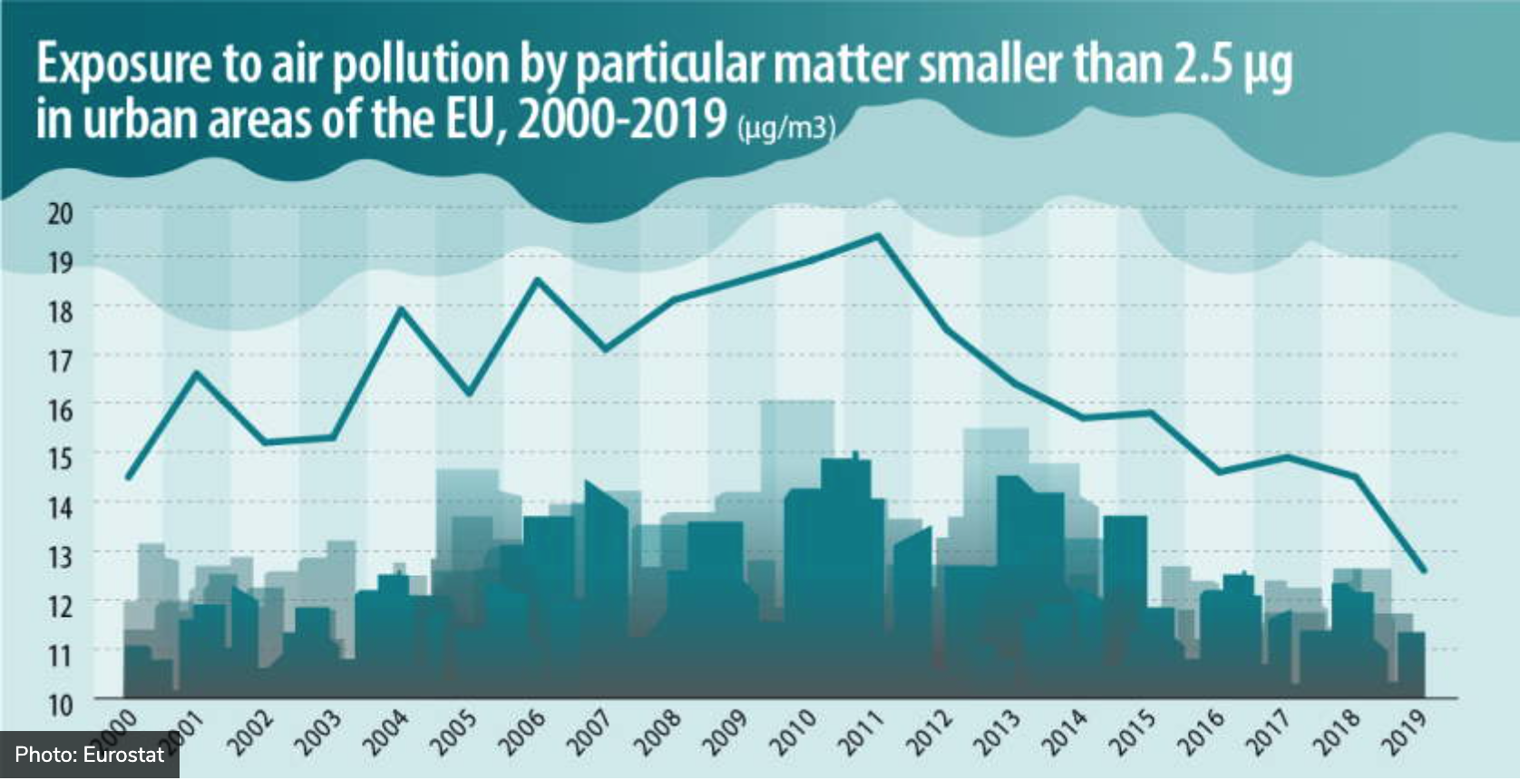 While this type of air pollution has been for a number of years below the limit set from 2015 onwards (25 μg/m3 annual mean), substantial air pollution hotspots remain. Moreover, despite the gradual decrease in recent years, the levels of air pollution in 2019 still continue to be above the level recommended by the WHO (10 μg/m3 annual mean), Eurostat said.