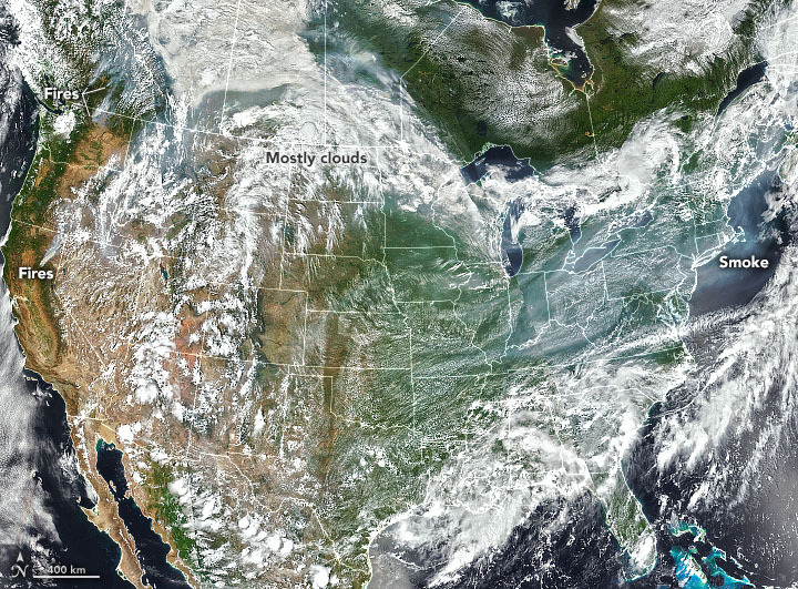 While plumes of wildfire smoke from western North America have passed over the northeastern U.S. and Canada multiple times each summer in recent years, they often go unnoticed. That is because smoke that spreads far from its source typically moves at a fairly high altitude—between 5 and 10 kilometers—as winds blow it eastward.